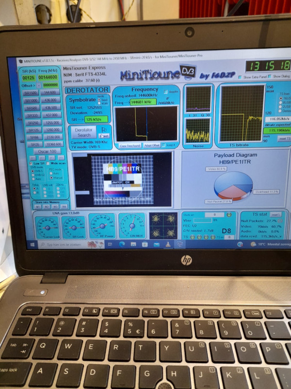 One of the highlights was a two-way DATV QSO between HB9/PE1ITR (JN47CF) and PI4GN (JO33HJ) over a distance of 695 kilometers. I believe a datv distance world record. The radio propagation was aircraft scatter. They were nice long reflections, partly due to the greater distance between the stations. D8 signals for 10 seconds or more. Very impressive.